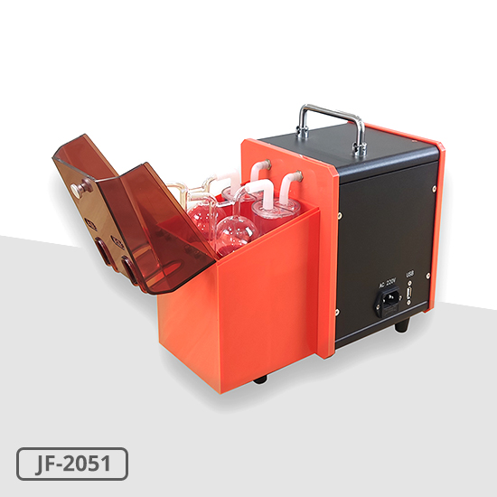 JF-2051型双路烟气采样器应用溶液吸收法采集各种有害气体。可供环保、卫生、劳动、安监、军事、科研、教育等部门用于各种锅炉、炉窑烟气的排放浓度/总量及设备脱硫效果的测定。根据HJ/T47-1999《烟气采样器技术条件》的要求,并在小型便携、流量稳定性等方面有较大的改进,大大减少了劳动强度。
